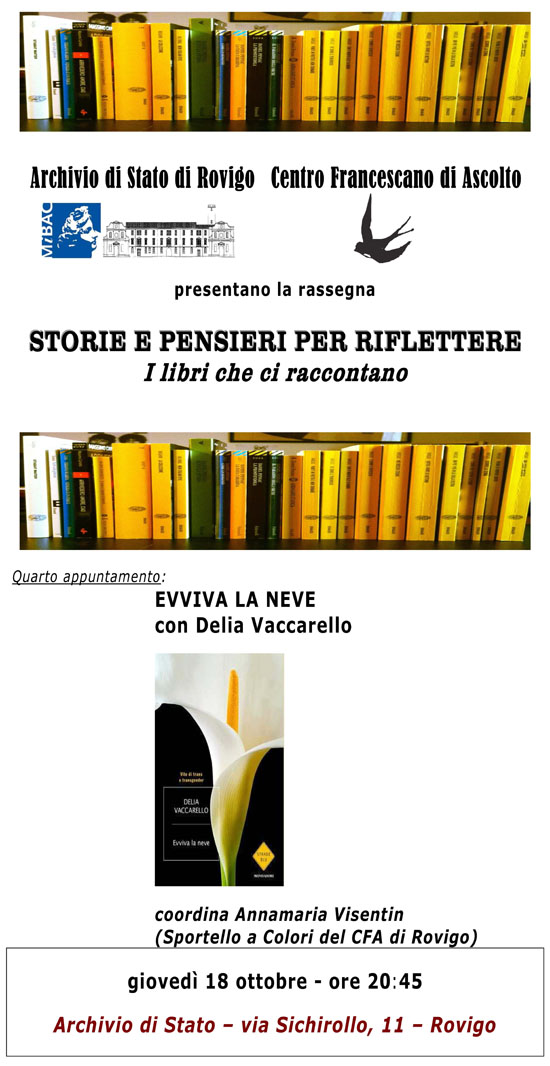 Racconta di rinascite. Di vite offese dai pregiudizi che scuotono le nostre coscienze, dice Giovanni Bachelet. Voci sferzate dai rigori del gelo sociale che all’improvviso può allentarsi, svanire persino, se a un tratto, morbida, cade la neve.